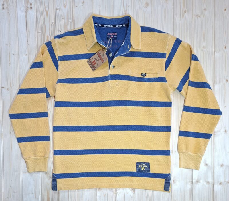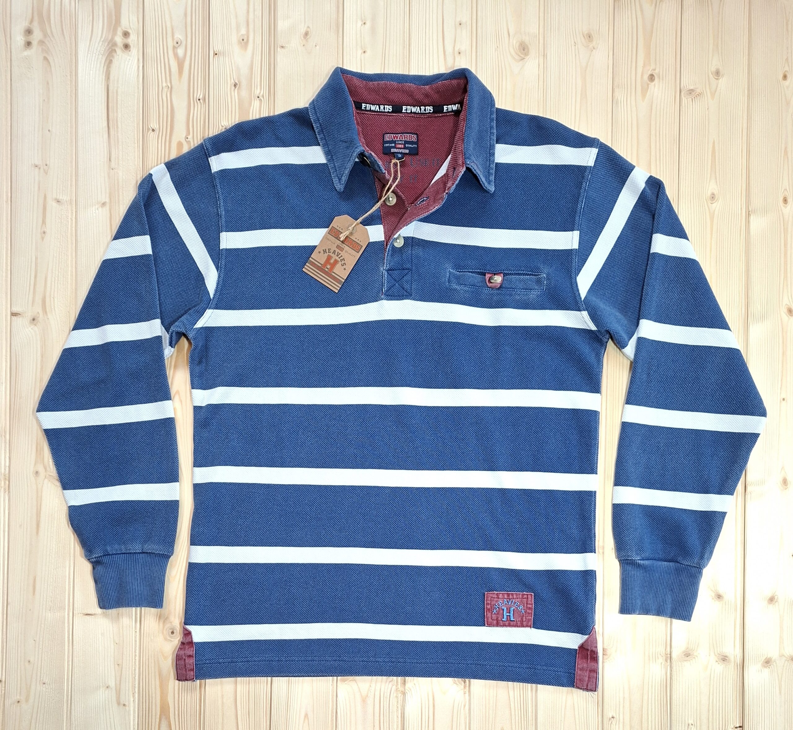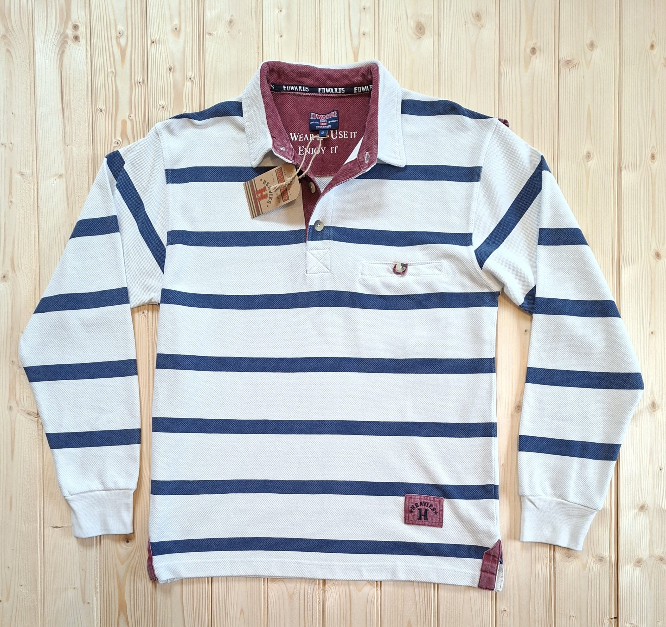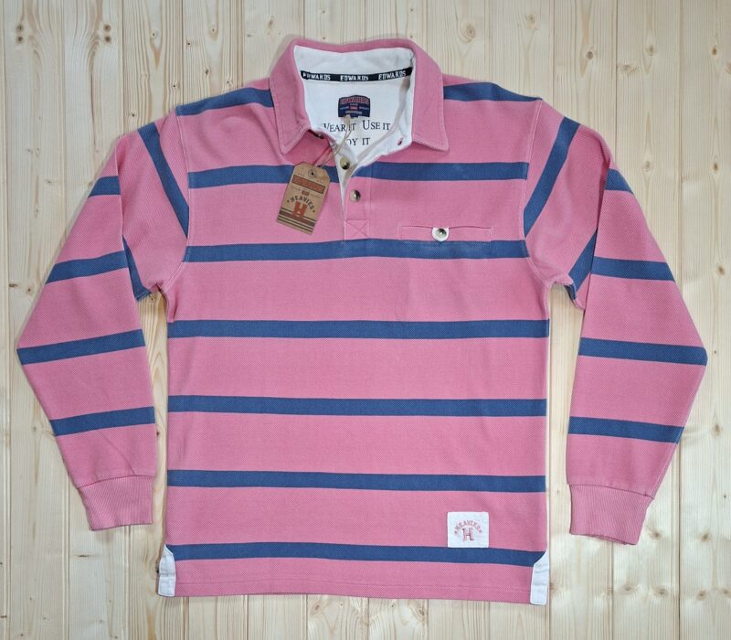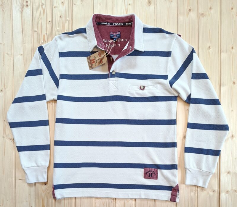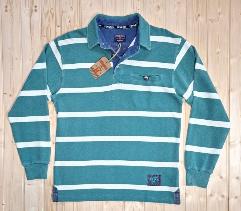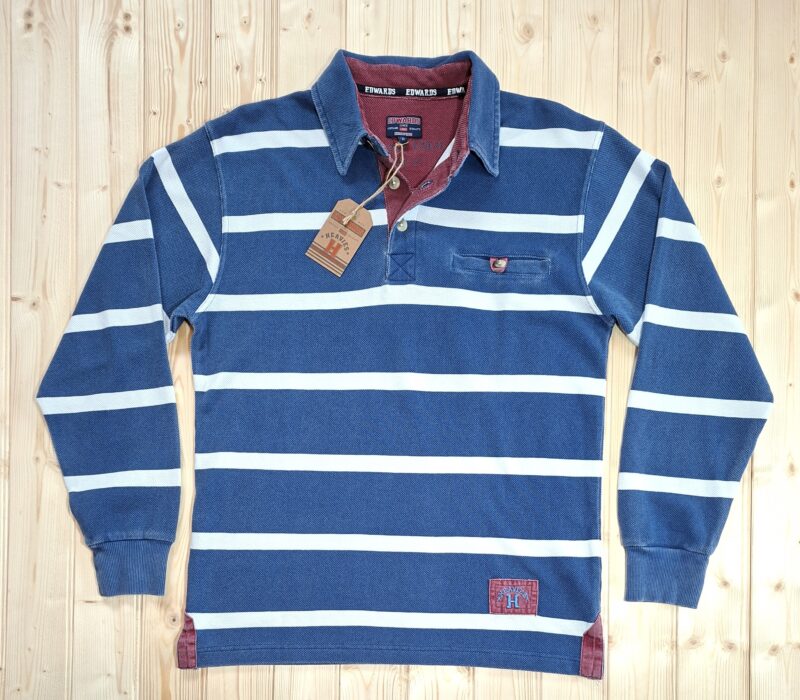 ‘Edwards Heavies’ long sleeve, heavy weight, stone washed, striped jersey polo shirt with pocket.