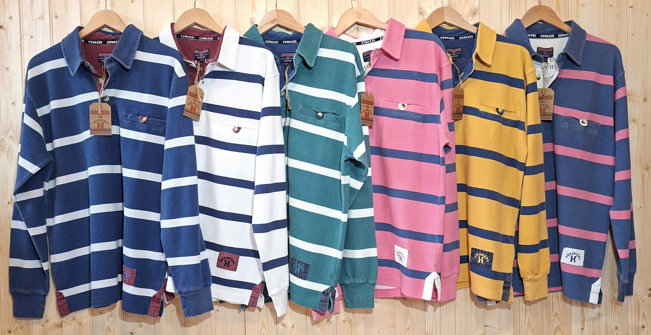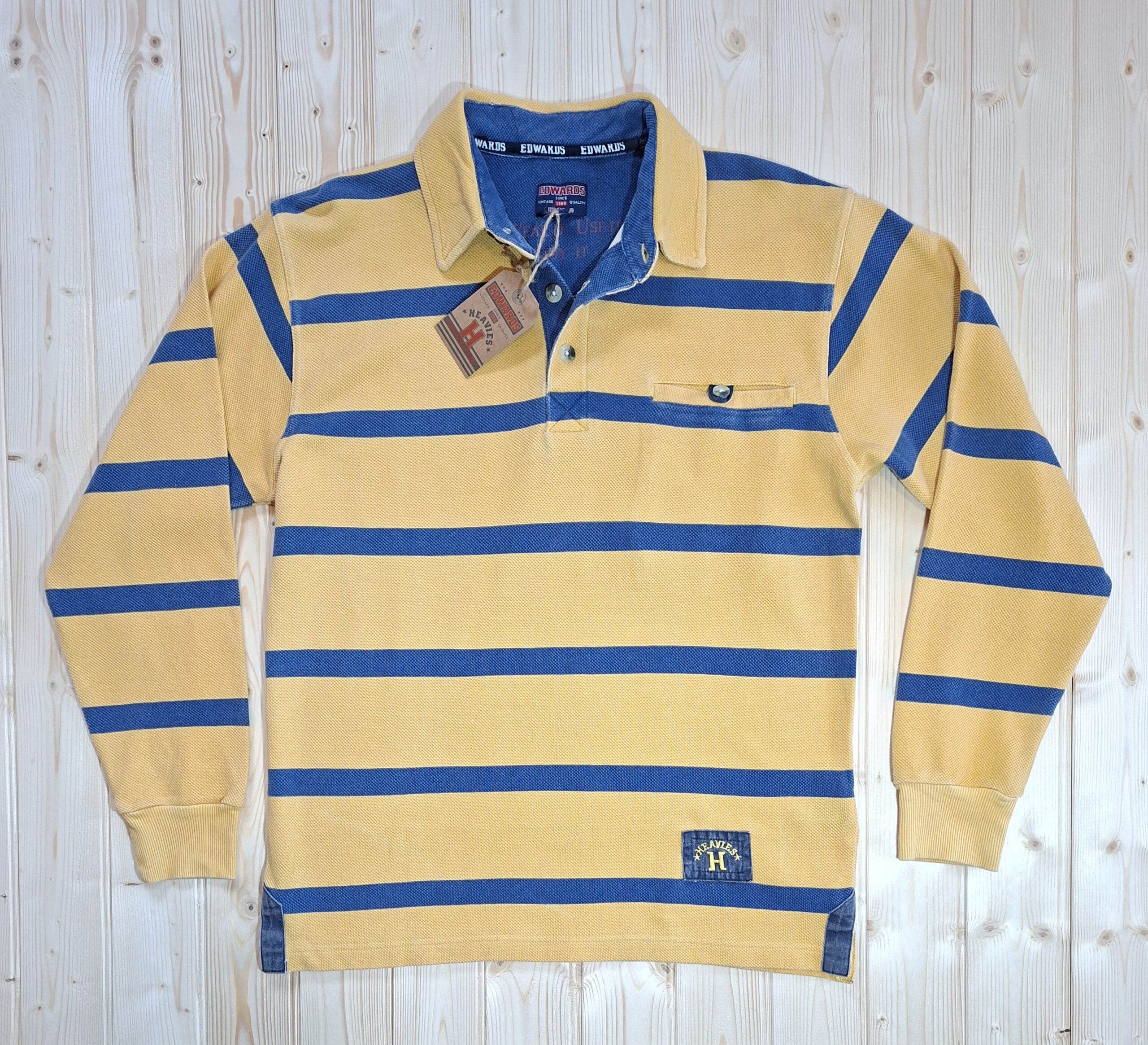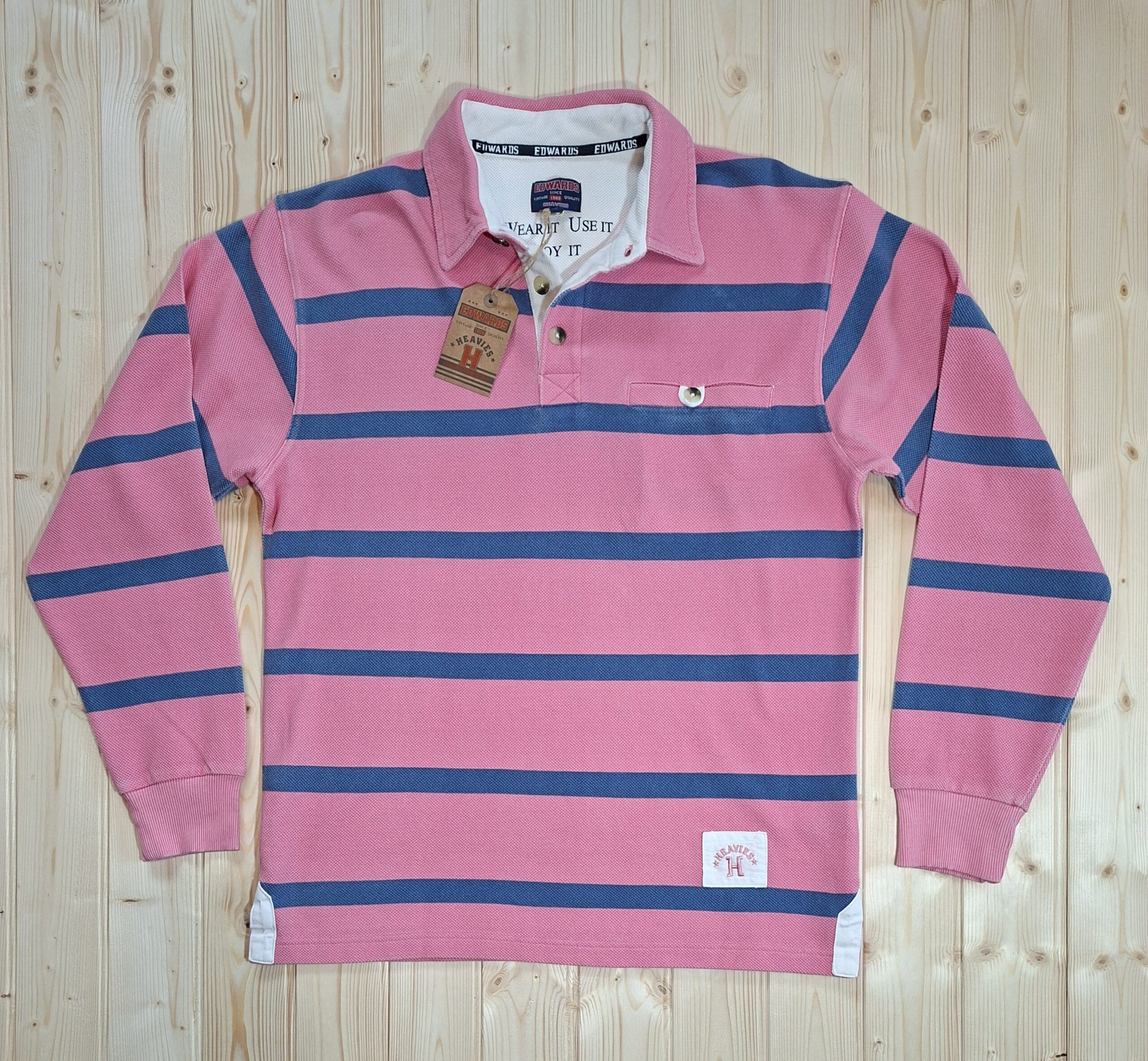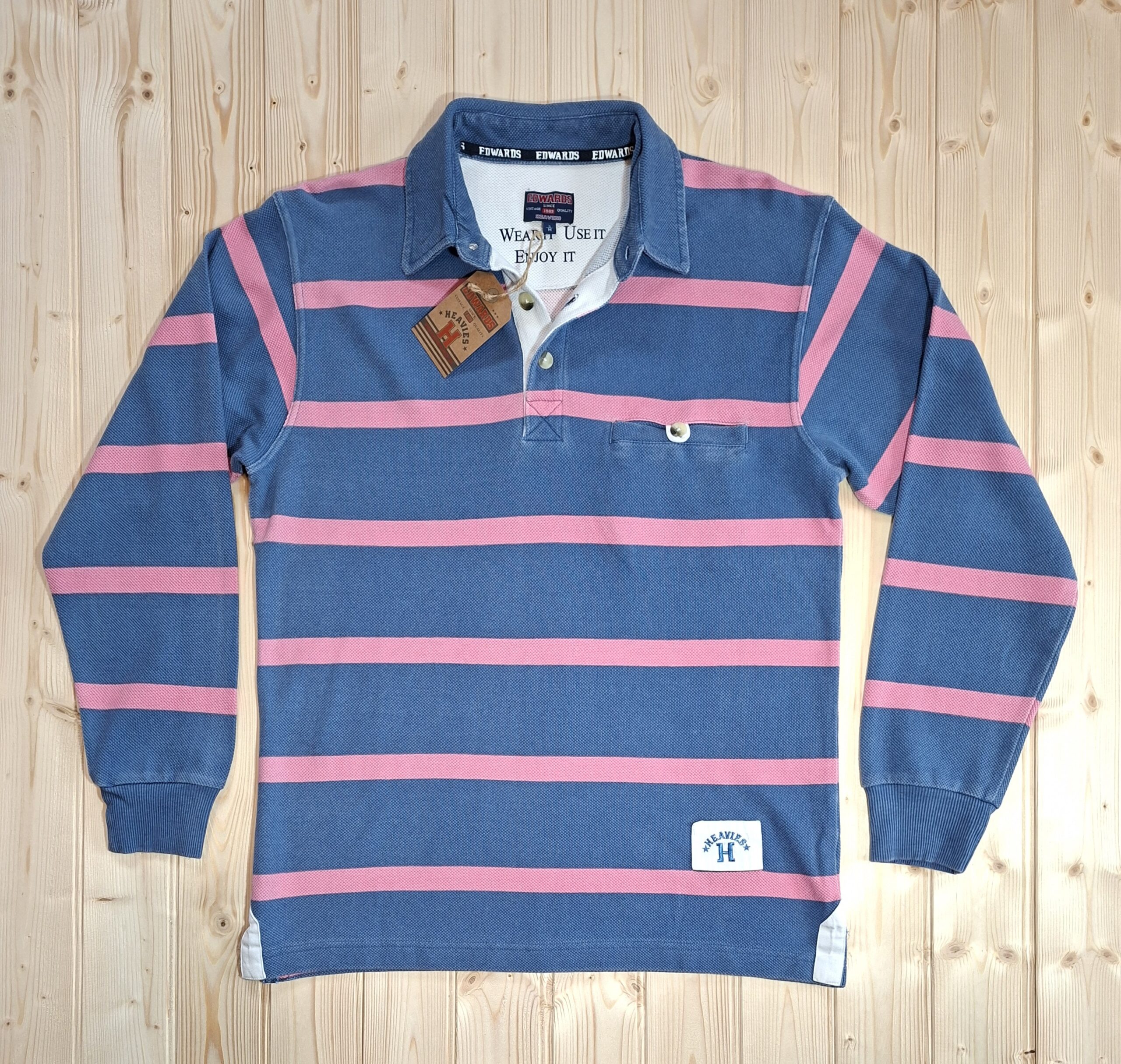 ‘Edwards Heavies’ long sleeve, heavy weight, stone washed, striped jersey polo shirt with pocket.