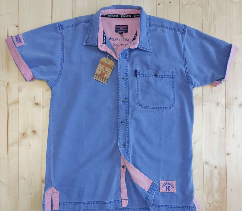 ‘Edwards Heavies’ 100% stone washed short sleeve cotton twill shirt with pocket, contrasting colour placket, reverse cuffs and detail. This garment has been washed with sand and pumice stone to create that famous ‘Edwards Heavies’ washed and used look. Wear it!… Use it!… ENJOY IT!!!